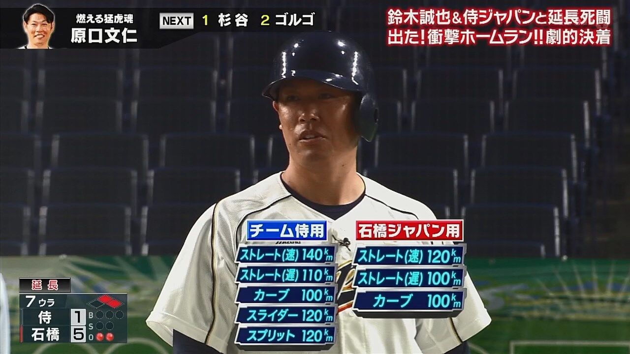 【リアル野球BAN】石橋ジャパン・原口、プロ用の球種で2点タイムリースリーベース!!!!!!!!!!