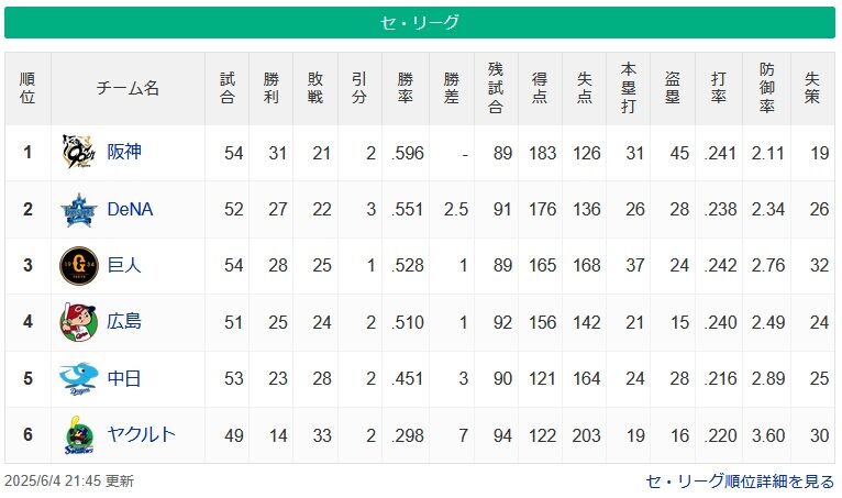 【6/4】●●●●●●●●●●●●●●●●●●●東京 ●●●●●中日 広島○ 読売○○○ 横浜○○○○○
