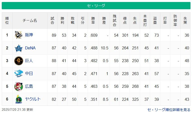 【7/20】●●●●●●●●●●●●●●●●●●●●●●●東京 ●●●●●●広島 ●●●●●中日 ●●●読売