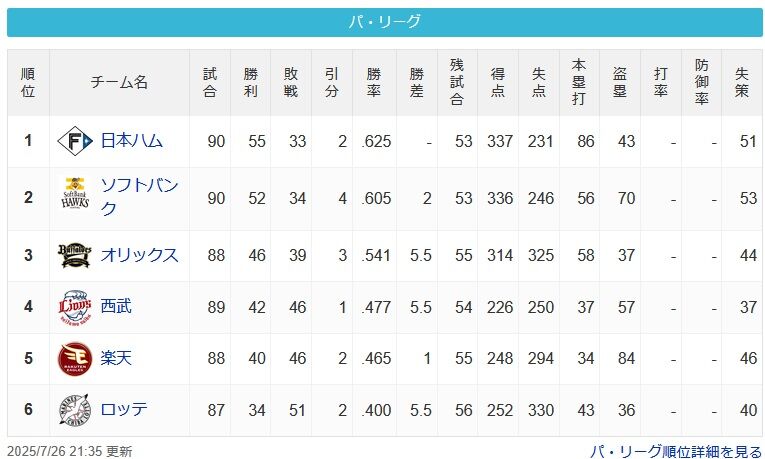 [パスレ]公==鷹=====-檻=====-西=楽=====-鴎【7/26】
