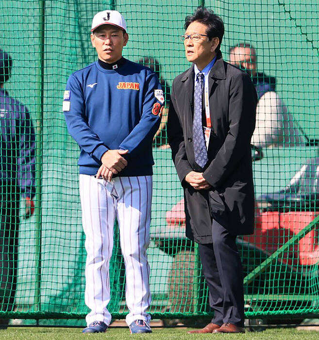 宮崎の侍キャンプ地に現れた栗山氏は、サブグラウンドでダルビッシュとガッチリ握手を交わし、あいさつ。他にもコーチ陣や宮城と大勢らとも会話。グラウンドでは井端弘和監督とも交流した。井端監督とは実に約30分の青空対談。23年大会で世界一に導いた栗山氏は「グラウンドに一歩出た時は、チームの空気をすごく感じられるので、邪魔したくないですけど、出させてもらいました。すごくいい感じの空気だったので、それは監督とも話をして、同じ感覚を持っていて、とてもいい感じでスタートしているなと思いました」と、久々の感覚をかみしめた。