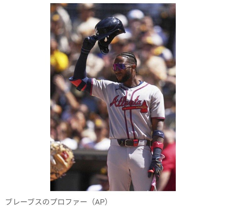 ブレーブスのジュリクソン・プロファー外野手(33)は3日(日本時間4日)、禁止薬物規定違反で大リーグ機構から無給での162試合の出場停止処分を科された。
