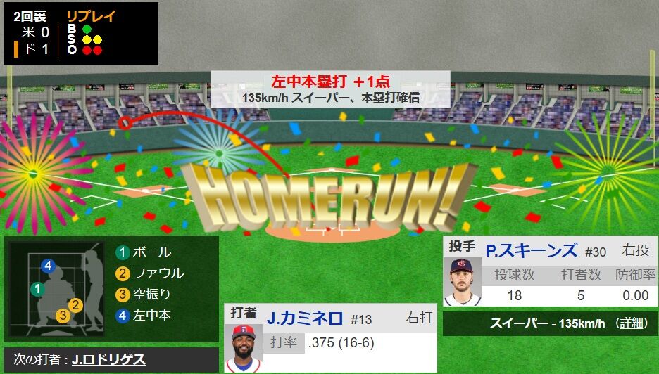【WBC準決勝・ドミニカ対アメリカ】ドミニカ・カミネロ、2回裏にスキーンズから先制ソロホームラン!!!!!!!!!!!!!!!!!