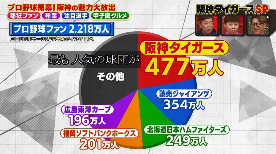 プロ野球ファン2218万人のうち477万人が阪神タイガースファンwwwwwwwww 野球議論、雑談 X Facebook はてブ LINE コピー 2026.04.07 スポンサーリンク 1: 名無し 2026/04/07(火) 14:04:53.642 ID:tOIzudnJl 中日は少ないの草 2: 名無し 2026/04/07(火) 14:05:26.319 ID:tOIzudnJl 阪神ファン1000万人ぐらいいそう 5: 名無し 2026/04/07(火) 14:06:44.137 ID:Td4a4BxEk 広島ってまだそんなにいるのかよ 続きを読む