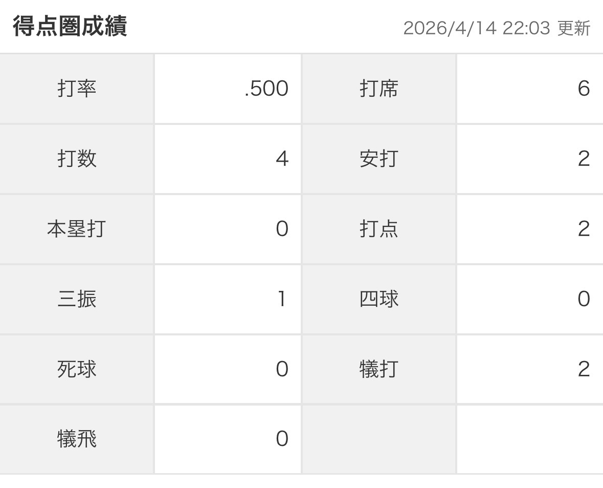 昨日の決勝タイムリー