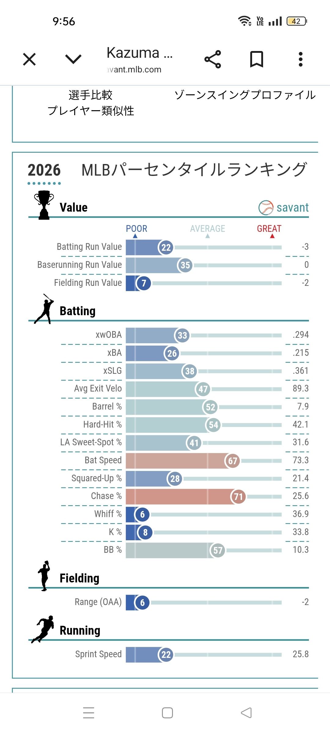 【悲報】岡本和真さん、守備指標ですらもMLB下位6%であることが判明wwww