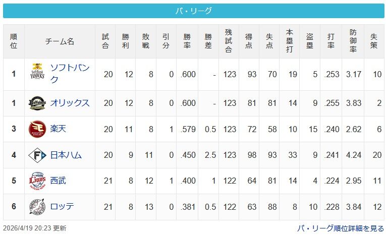 西武が投手war一位で野手もそこそこって本当に価値のないデータだな